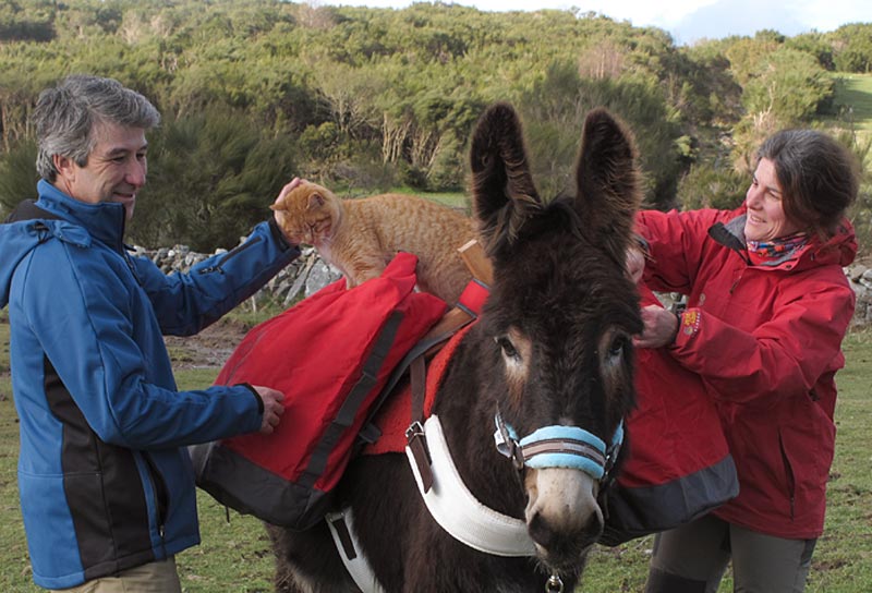 um burro de Miranda como parceiro de viagem e está a compartilhar a sua